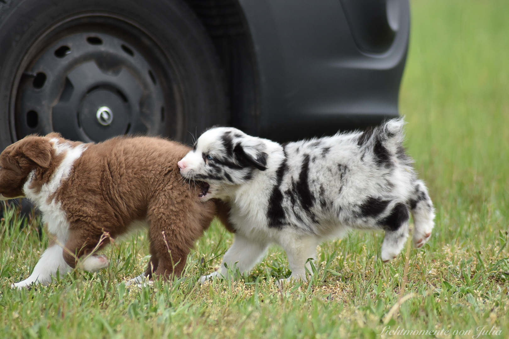 25.07.25 kleines Wurftreffen Puk, Chi aus (Liv x Ranger) 4 Monate und Nuii, Sally aus (Peach x Beau) 5,5 Monate